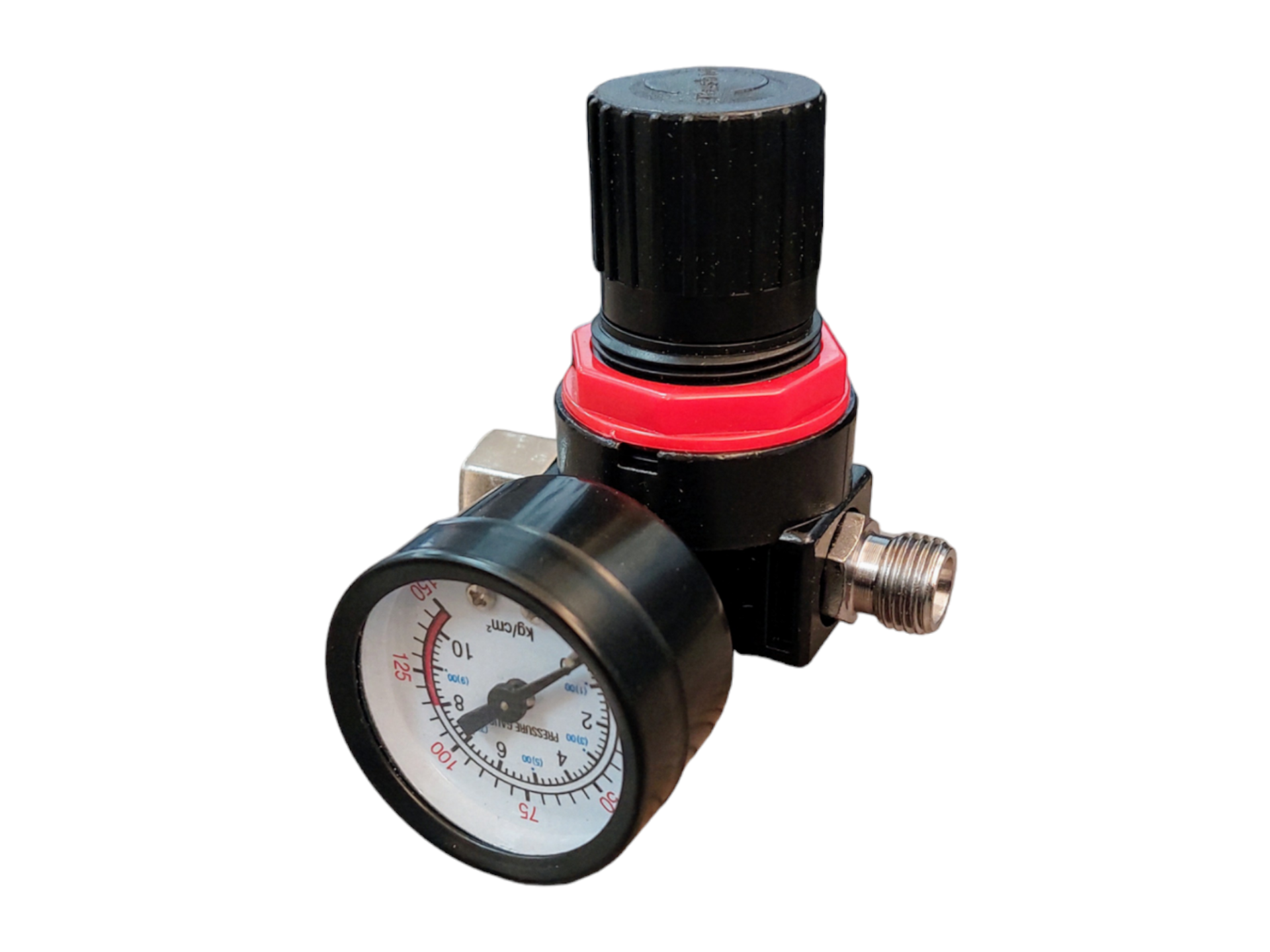 Регулятор давления применяется для измерения давления воздуха на выходе из компрессора. Для точного контроля за уровнем давления используется манометр. Изделие повышает срок службы пневмоинструмента.