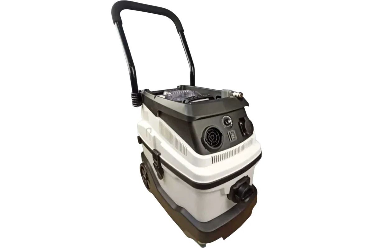 В комплекте с пылесосом поставляются различные насадки: щелевидная, щетка для ковровых покрытий и щетка для уборки влажных загрязнений; мелкая круглая щетка для мебели; телескопическая трубка; шланг пылеотводящий диаметром 32мм, обеспечивающий хорошее соотношение разрежения и производительности по воздуху; шланги для синхронной работы с пневматическим инструментом; шланг для подключения к шлифовальным машинам; легкосменные многоразовые фильтры-мешки из нетканного материала, обеспечивающие высокую силу всасывания пылесоса и эффективность фильтрации 99,5 – 99,9%. Благодаря качественному пластику, пылесос имеет небольшой вес, большие задние колеса обеспечивают устойчивость, а передние роликовые колеса- легкость перемещения.